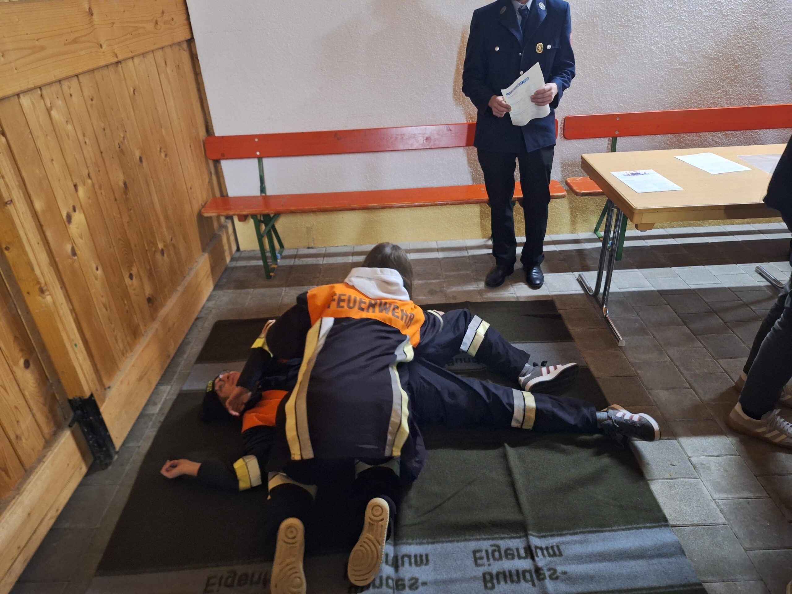 Insgesamt nahmen über 112 Jugendliche teil, um ihr Wissen im Bereich „Erste Hilfe“ unter Beweis zu stellen. Der Wissenstest umfasste einen schriftlichen Teil, der zu Beginn absolviert wurde, sowie – je nach Stufe – praktische Aufgaben. Dazu gehörten unter anderem das korrekte Absetzen eines Notrufs anhand von Fotos sowie das fachgerechte Vorgehen beim Auffinden von Personen, die Hilfe benötigen (etwa unter Schock stehend oder bewusstlos). Trotz begrenzter Platzverhältnisse konnten alle Prüfungen zügig durchgeführt werden.